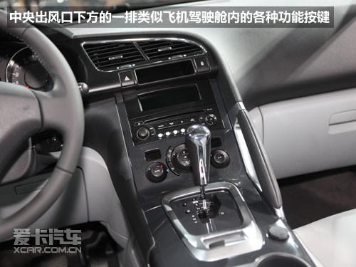 法國車的內飾一向喜歡把GPS導航的液晶屏設計在中控臺的上方,但我們在廣州車展上見到的這部確沒有配備GPS導航系統(tǒng)。另外這款標志3008還可以選配HUD抬頭顯示系統(tǒng),這套抬頭系統(tǒng)并不是將車況信息投射在前檔玻璃上而是投射在儀表前方的一塊透明玻璃上,對于駕駛員的安全提供了更多的保障。