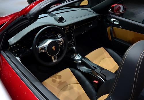 而在內飾上,不銹鋼車門檻帶有發光的“911 Edition Style”標示,這也是其特有的標志,另外內飾采用黑色真皮內飾,前后排座椅的中心和車門鏡提供沙褐色或赤土色裝飾;儀表板內飾、車門飾件和座椅的縫線均采用對比色。