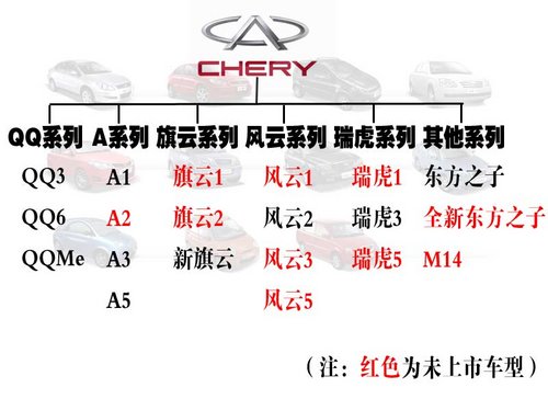 另外,奇瑞汽車銷售有限公司副總經(jīng)理劉宏偉先生還介紹了奇瑞品牌新產(chǎn)品規(guī)劃,未來將會有10款新車型推出。剛剛上市的風云2三廂是風云系列的首款車型,未來還會推出風云1、風云3和風云5,分別為A00級、A級和B級車型。而旗云系列除了會推出旗云1以外,還會推出旗云2;瑞虎在今年年底將推出DR該款,未來還會推出瑞虎1和瑞虎5;另外,新一代東方之子和代號為B14的硬頂敞篷跑車也被列入新車規(guī)劃之中。
