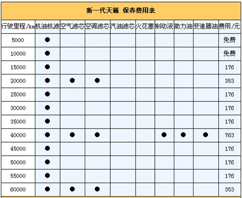 5.保養(yǎng)費。我們向東風(fēng)日產(chǎn)4S店售后服務(wù)人員咨詢過,新一代天籟保養(yǎng)周期為5000km,首保在5000km時進行(免費),以后每5000km做一次保養(yǎng),以一年2萬公里來計算其一年保養(yǎng)費平均用在900元。