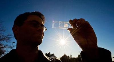 資料圖片:美科學(xué)家開發(fā)新型光伏電池。光伏電池可以把太陽的光能直接轉(zhuǎn)化為電能