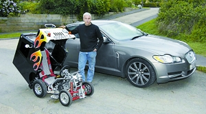 打造世界最小汽車的靈感來(lái)自于一部熱播動(dòng)畫片。英國(guó)《每日電訊報(bào)》12日引述沃特金斯的話報(bào)道:“那天我瀏覽億貝公司網(wǎng)頁(yè),尋找合適改裝對(duì)象。我把目標(biāo)鎖定在蘇格蘭出售的投幣式兒童玩具車上。這輛車按動(dòng)畫片《郵遞員帕特》中主人公使用的坐駕為原型制作。”