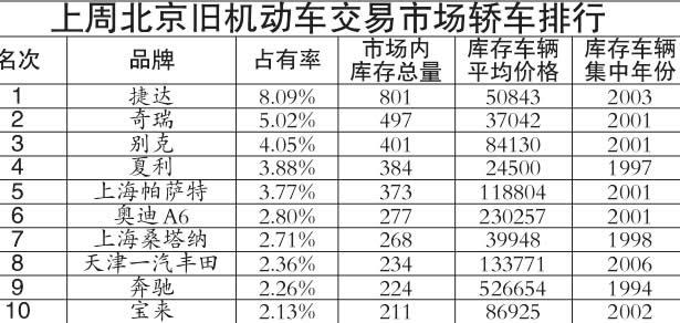 市場在十一黃金周之后出現了明顯的旺季特點,市場大部分車型的庫存有所增長。捷達庫存大幅增長,車輛集中在2003年的CIX系列;奇瑞庫存明顯增長,車輛集中在2003年前的風云系列;別克庫存大幅增長,車輛主要集中在2001年左右的別克G系列老車型;夏利庫存小幅增長,車輛集中在2000年前的化油器車型;帕薩特庫存明顯增長,車輛集中在2001年左右的1.8和1.8T系列車型;奧迪A6庫存小幅增長,車輛集中在2001年的2.4系列車型;上海大眾桑塔納系列整體庫存小幅增長,車輛集中在1999年前的化油器車型。