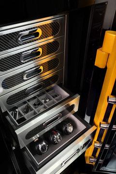 蘭博基尼特別版保險(xiǎn)箱內(nèi)部擁有很多分層,可以方便、安全的存放不同的物品。如果您是蘭博基尼的車(chē)主,在配一款如此特別的保險(xiǎn)箱,必然會(huì)非常惹人羨慕。不過(guò),及時(shí)你將貴重的鐘表、首飾及珠寶等物品放入其中,您也仍然可以放心的駕駛自己的愛(ài)車(chē)去遠(yuǎn)郊兜風(fēng)。