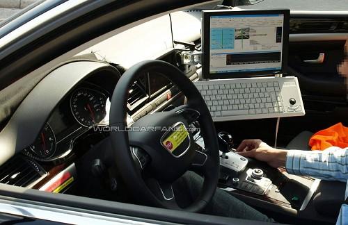 最近諜照記者設(shè)法拍到了奧迪新一代A8的內(nèi)裝照片。雖然這輛測(cè)試車(chē)的內(nèi)裝混合了現(xiàn)行版和下一代車(chē)型的內(nèi)裝配置,但仍能看出新車(chē)采用了新的方向盤(pán),經(jīng)過(guò)升級(jí)的儀表群以及造型古怪的變速桿,它或許可以提供包括自動(dòng)泊車(chē)等先進(jìn)功能。測(cè)試人員右側(cè)放置的電腦顯示了新車(chē)正在測(cè)試的是車(chē)輛監(jiān)測(cè)技術(shù),該技術(shù)利用攝像頭和傳感器來(lái)探測(cè)車(chē)輛是否處于可能與其他車(chē)輛發(fā)生碰撞的危險(xiǎn)環(huán)境中。