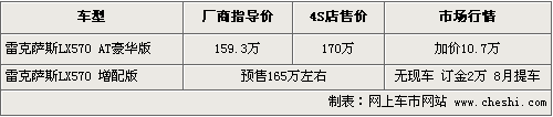 筆者目前從雷克薩斯經銷商處了解,雷克薩斯LX570因產能有限,貨源供應非常緊張。目前基本是訂單式銷售,而提現車的話加價金額則超過了10萬元。同時,雷克薩斯LX570增配版車型將于8月份到店,銷售人員介紹,增配版車型將增加智能副駕系統,同時在內飾和外觀上也有小幅的變化,預計售價在165萬左右。具體售價目前尚未公布,現在消費者訂車需要2萬元定金,一個月左右方可提車。