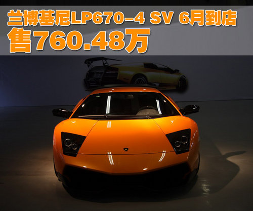 據蘭博基尼北京展廳的銷售人員介紹,蘭博基尼Murcielago LP 670-4 SV將會在6月底有一臺黃色現車抵達展廳,售價760.48萬元。據了解Murcielago LP 670-4 SV的官方指導價格是730萬元,但本次抵達展廳的現車是增加了許多改裝套件,所以價格有了30萬元以上的提升。