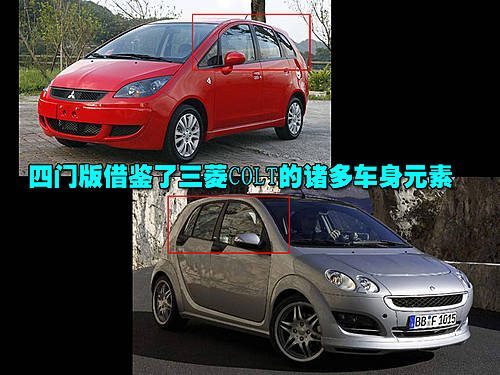在最初銷售的車型ForFour銷量下滑后,這將是第二次嘗試開發四門版車型的模式,這種模式,如上圖所示,是奔馳與三菱在COLT的基礎上共同開發的車型。
