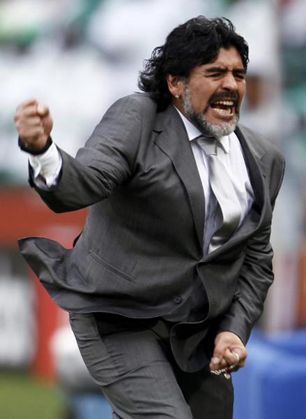 馬拉多納回來了,以一個新身份——球王主教練,帶領梅西等一班天才,想要體驗真正黃袍加身的快感。北京時間6月12日晚,阿根廷小勝非洲雄鷹,馬拉多納用快感在鉆石王國肆虐了一把,熊抱木訥梅西,親了又親。