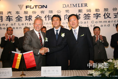 左起:戴姆勒董事顧儒伯、北汽控股董事長徐和誼、福田總經理王金玉
