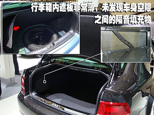 斯柯達(dá)昊銳應(yīng)該說是這三款車型中最為厚道的一款,在其行李箱內(nèi)部的包裹材料與外側(cè)車身之間的空隙中,記者看到了非常厚實的一層隔音棉作為填充。