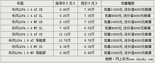 據(jù)雪佛蘭LOVA“樂(lè)風(fēng)”銷售人員表示,購(gòu)買雪佛蘭LOVA“樂(lè)風(fēng)”車型除了可以得到10000元的價(jià)格優(yōu)惠外,還可以得到價(jià)值4000元的裝潢大禮包。優(yōu)惠后的雪佛蘭樂(lè)風(fēng)LOVA 1.4 SL MT僅售6.59萬(wàn)元。