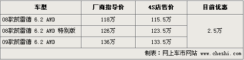 據4S店銷售人員介紹,在4月1號到4月4號之間,在農展館現場購車的消費者可優惠現金2.5萬元,相比之下,其價格有一定幅度增加。目前銷售的車型有08款和09款,其中輪轂是選裝件,消費者可以在18寸和22寸輪轂之間選擇,價格也相差約8萬元。現在4S店現車主要以黑色為主,欲購車的消費者可到店咨詢。