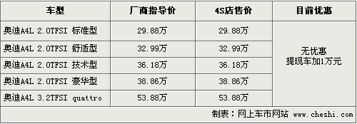 筆者從北京地區(qū)經(jīng)銷商處了解到,目前奧迪A4L現(xiàn)車供應(yīng)比較緊張,現(xiàn)車數(shù)量非常少,款式主要集中在2.0T舒適版和3.2兩款車,各4S店供車情況有一定差異。部分店提現(xiàn)車仍然需要加1萬元現(xiàn)金,或者在店內(nèi)做1萬元裝飾。消費(fèi)者如果訂車的話,需要交5000元左右訂金,等待一個(gè)月時(shí)間提車。