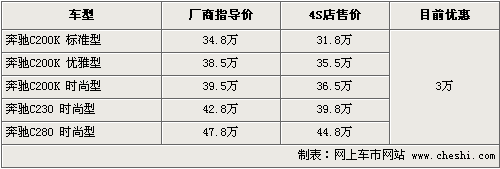 筆者從奔馳北京地區經銷商處了解到,目前奔馳C級全系優惠現金3萬元,C200K標準型優惠售價僅為31.8萬,C230優惠后僅售39.8萬,C280時尚型優惠后售44.8萬元。目前4S店內有銀色、黑色等款現車供應,消費者可以到店試乘試駕,感受這款車的性能。