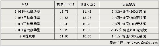 據雪佛蘭經銷商表示,購買景程全系除了可以得到2.45萬元的價格優惠外,還可以得到4500元的裝潢大禮包和車上人員險。