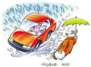 下雨天路面濕滑,開車更應(yīng)小心行駛、放慢車速,但不少市民都有被身旁疾駛而過的車輛濺濕的經(jīng)歷,下雨天開車不減速,導(dǎo)致雨水濺濕路人的行為也被列為最無車德的行為。