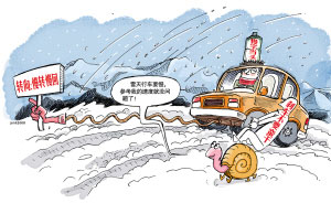 雪天行車,首要是慢,其次是和前車保持足夠的距離,再有要提前剎車,當發(fā)現(xiàn)和前車的距離在縮短,不管什么原因都要馬上收油減速并將腳放在剎車踏板上準備剎車,千萬別有僥幸心理,麻痹大意。