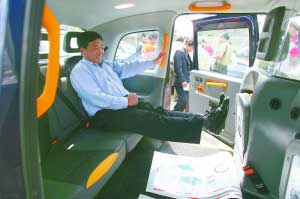 與國內(nèi)的出租車相比,這種出租車內(nèi)部空間大很多,后座一共有5個(gè)座位,相向而坐,殘疾人坐著輪椅可以直接上車,在車內(nèi),能輕松的挺直身子,自由轉(zhuǎn)動(dòng)。副駕駛位置是不坐人的,是用來放行李,至于后備廂,則變得很小,這樣,車子絕大部分空間都給了乘客,三個(gè)北京人坐一排同時(shí)伸懶腰舒展筋骨沒有任何阻礙。