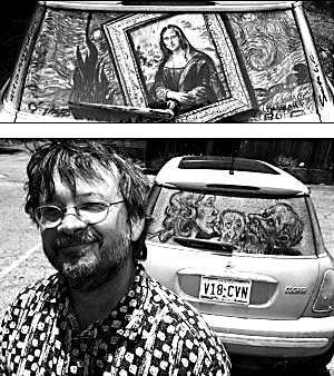 說到臟車藝術(shù),大家是不是有點(diǎn)糊涂?這得從美國人斯科特·韋德說起,家住得克薩斯州的他每隔一段時(shí)間就開著自己的車前往鄉(xiāng)下,在顛簸的土路上來回行駛。他不是在測(cè)試車的減震系統(tǒng),也不是在享受駕駛樂趣,而是為了把車弄得“風(fēng)塵仆仆”,給他的臟車藝術(shù)創(chuàng)作獲取材料,F(xiàn)年48歲的韋德畢業(yè)于得州大學(xué)藝術(shù)系,4年來,這位特立獨(dú)行的藝術(shù)家從不洗車,而是任憑車的后擋風(fēng)玻璃被灰塵覆蓋,然后將玻璃當(dāng)作畫布,將灰塵當(dāng)作顏料,展開藝術(shù)創(chuàng)作。