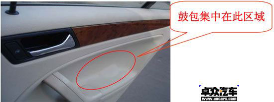 質量問題一:新寶來左、右后車門內護板的蒙皮中部鼓包