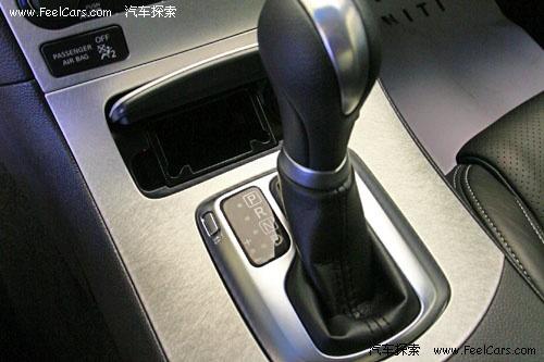 與強大發動機配合的,是一款7速手自一體變速箱。不但可以通過變速桿控制換檔的,還可以通過方向盤上的換檔撥片控制。粗壯的三輻射多功能方向盤上的按鈕可以控制導航、音響和電話等功能。顏色鮮艷的儀表盤提供了不錯的視覺效果,而導航系統和空調出風口的設計與目前國產的天籟公爵十分相似。