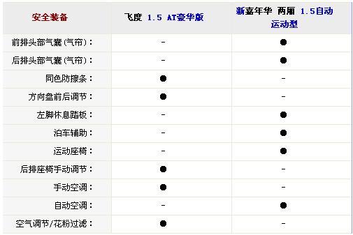 如果拿1.5手動豪華型做對比的話,與飛度對應的是新嘉年華1.5手動運動版,也是新嘉年華最富吸引力的一款車型。兩車的價格相差2900元,而新嘉年華在安全配置上卻勝出對手一大截,前后排頭部氣簾提升了運動版的被動安全性能,倒車雷達也讓全系無此配置的飛度感到臉紅,而新嘉年華的自動空調也絕對稱得上小型車里難得的高配了。