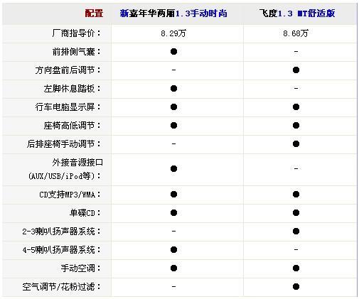 兩款車型的定價區間有不小的差距,大概在八千元左右。不過,因為飛度目前有大約3000元左右的少量優惠,實際算下來售價還算是接近的。這種情況下配置的比較也才顯得更有意義。