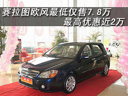 賽拉圖歐風(fēng)是東風(fēng)悅達(dá)起亞汽車有限公司旗下的首款兩廂車型,全系有四個(gè)車型,價(jià)格區(qū)間為9.18萬(wàn)元-11.68萬(wàn)元。近日,記者在走訪北京地區(qū)東風(fēng)悅達(dá)起亞4S店時(shí)了解到:目前購(gòu)買賽拉圖歐風(fēng)車型最高可以得到1.78萬(wàn)元的現(xiàn)金優(yōu)惠,具體車型售價(jià)見(jiàn)下表: