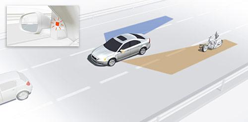 在車(chē)輛行駛過(guò)程中,通過(guò)雷達(dá)監(jiān)控車(chē)輛后部和旁邊是否有其他車(chē)輛,當(dāng)視野死角內(nèi)有車(chē)或后部有車(chē)輛接近時(shí),通過(guò)外后視鏡的LED燈提醒駕駛員。