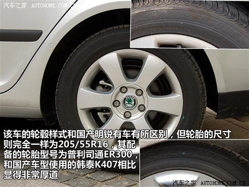 該車的輪轂造型和國產明銳有所區別,雖然尺寸一樣,但視覺上還是國產車型配備的輪轂看上去更大,也更漂亮。輪胎采用的是205/55R16的是普利司通ER300。和國產車型采用的韓泰K407輪胎相比好太多了,相信很多國產明銳車主看到這里都在暗自羨慕。