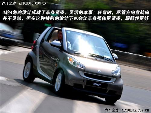 原地打輪時,方向盤的轉向力度很輕,一只手操作沒有任何難度;一旦進入行駛狀態(tài),該力度就會發(fā)生明顯的變化,這時雖說算不上很沉的那種,但也絕不屬于一只手能輕松面對的,所以在駕駛smart時,您最好還是雙手踏踏實實握住方向盤吧。