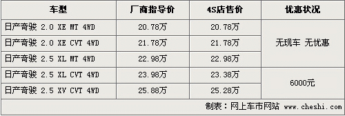 東風日產(chǎn)奇駿優(yōu)惠6000元