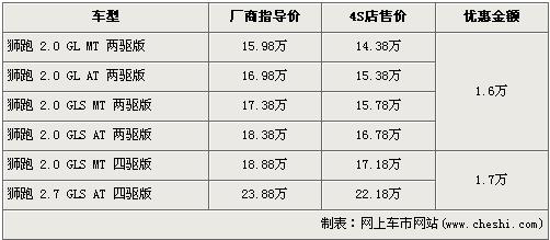 新老獅跑齊降價 最高優(yōu)惠3.3萬