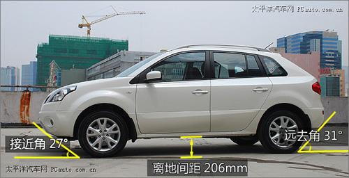 雖說(shuō)雷諾Koleos不以SUV自居而是強(qiáng)調(diào)Crossover的跨界車型,但是起外形設(shè)計(jì)則處處體現(xiàn)SUV的特質(zhì),206mm的最小離地間距保證了其有足夠的通過(guò)性能,而27°的接近角和31°的遠(yuǎn)去角都完全是按照SUV的級(jí)別來(lái)設(shè)計(jì)的,應(yīng)對(duì)各種顛簸路面或是崎嶇山路都能從容通過(guò)。