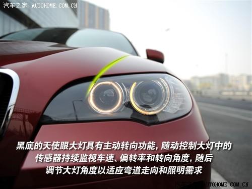X6在細(xì)節(jié)的設(shè)計(jì)上也沒有偷懶,除了前臉的雙腎形格柵很難創(chuàng)新以外,其他很多細(xì)節(jié)還是很有特色的。格柵下面的蜂窩狀進(jìn)氣口和X5的比較接近,就像鱷魚在咬到獵物之后,即將合上的大嘴一樣。大燈則是非常聰明的主動(dòng)轉(zhuǎn)向頭燈,天使眼也絕對(duì)不會(huì)缺席,黑色的底色很配X6的設(shè)計(jì)風(fēng)格。