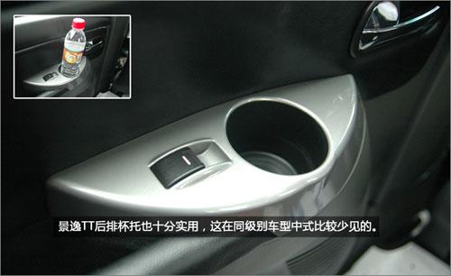 “景逸TT”全車共有38處個性儲物空間;此外,當后排座椅被放倒時,“景逸TT”的行李箱空間可從700升立刻增加至1970升,足可以滿足車主的任何需要。細節(jié)設(shè)計充分說明,景逸TT已經(jīng)將人性化設(shè)計發(fā)揮到不錯的程度,每個細節(jié)都體現(xiàn)了設(shè)計師的用心與體貼。