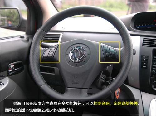 作為一款“高性價”比轎車,景逸的配置看起來有些眼花繚亂,甚至出乎意料:四向可調(diào)節(jié)方向盤、左腳休息踏板、泊車輔助系統(tǒng)、倒車影像系統(tǒng)、可外接音源(AUX/USB/iPod等)、CD支持MP3/WMA、6喇叭環(huán)繞揚聲器系統(tǒng)、自動頭燈、空調(diào)后排出風口等這一切都體現(xiàn)出景逸TT超高的性價比。