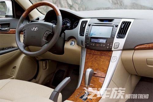 相比外觀的年輕態,SONATA領翔的內室改進也算是大刀闊斧。雖然主打商務,但全新的內室風格并不乏活潑氣息,簡單的顏色搭配和悅動非常相像?上У氖,做工和用料依然不夠講究,讓人略顯失望。還有就是仿桃木面板,可能它在一部分人群心目中是個顯范兒的設計,當然還要看材料的顏色和質感以及使用頻率和位置。中控臺是個亮點,也讓我看到了現代今后的家族特征。方向盤下方取消了鑰匙孔,而使用無鑰匙啟動系統,開始向同級別的日本車靠攏。藍色自發光儀表不僅美觀,簡潔時尚的三環設計,更將車輛狀態清楚地展現在駕駛者面前!昂笈殴こ獭币恢笔侨枕n中級車最引以為傲的地方,SONATA領翔當然也不例外。真皮包裹的座椅以及扶手部分的材料非常柔軟,還設有煙灰缸、杯架及手動遮陽簾,中央扶手后部連通行李廂,人性化做得不錯。