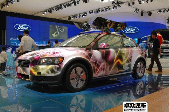 車展上,沃爾沃展臺另一款車小車C30 Burton滑雪紀念版同樣受到許多駐足的目光。