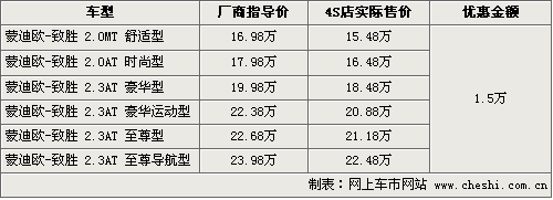 據4S店銷售人員介紹,目前消費者購買蒙迪歐致勝全系可以優惠現金1.5萬元,同時個別款色還需要先預定。入門車型在優惠后售價僅為15.48萬元,不足16萬,但目前手動檔車型4S店內暫時沒有現車,需要消費者先行預定。現車方面,有黑色,銀色等可供選擇,內飾有淺色和深色兩種可選。