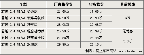 據4S店銷售人員介紹,目前購買現款君越全系車型可優惠到3.8萬元,部分4S店還將贈送2000元的裝飾,優惠累計達4萬,但混合動力版君越仍然是全款訂車或購買,沒有優惠幅度。君越目前有黑色和同時受到眾多關注的新君越,銷售人員介紹,這款車現在就可以接受預訂,訂金為1000元,屆時新車到店以后,消費者如果不滿意可退還全額訂金。