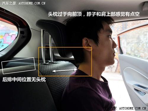 前排就是普通的手動(dòng)六向調(diào)節(jié)方式,沒(méi)有什么可以特別說(shuō)明的。而后排三人座只提供了兩個(gè)頭枕,頭枕可以上下調(diào)節(jié),但是過(guò)于向前探出,就會(huì)頂著人的后腦勺,使脖子部位懸空,感覺(jué)不是很舒適。而且,沒(méi)有車頂拉手給乘客用來(lái)維持身體平衡讓人很不習(xí)慣。