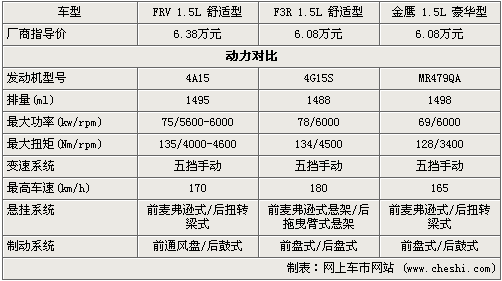 在動力方面,駿捷FRV采用的是綿晨動力4A15發動機,而F3R則采用是三菱4G15S,兩者在功率、扭矩數據上基本相當,而吉利自主的MR479QA從數據上看要弱一些,三者都為手動擋車型。在懸掛系統方面,駿捷FRV與金鷹采用的是前麥弗遜式、后扭轉梁式,造型簡單、成本也比較低。而F3R采用時前麥弗遜式懸架、后拖曳臂式懸架,乘坐的舒適性要好一些。