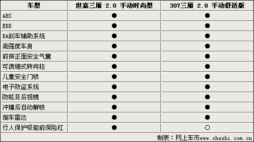 由于兩款車型都是2.0的低配車型,所以在配置方面沒有太突出的地方。電動門窗、外后鏡電動調節、遙控鑰匙和后排座椅放倒功能都是它們的標配。但是兩款車型還是各自都有各自的特點,雪鐵龍世嘉三廂配備了定速巡航,可以大大減少駕駛員長途駕駛的疲勞。標致307則配備了具有冷藏儲物功能的手套箱。這些配置在同級別同價位的車型中都是很少見到的。