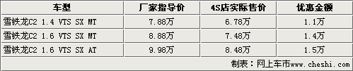 目前北京地區(qū)4S店主要賣的是C2運(yùn)動(dòng)版VTS車型,購(gòu)車的消費(fèi)者不僅可以享受到最高1.5萬元的現(xiàn)金優(yōu)惠,而且還能得到商家隨車贈(zèng)送的部分車內(nèi)裝飾。目前C2運(yùn)動(dòng)版VTS主要有紅色、黑色等款,顏色和車型并不是很全,個(gè)別款需要預(yù)訂,其余車型均沒有現(xiàn)車銷售。
