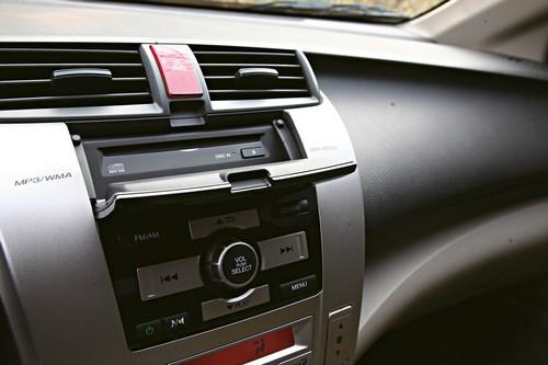 鋒范中控臺的樣式比較規整,各功能區域劃分明顯,一些常用的按鍵還被刻意放大,提升了實用性,但相比新飛度非對稱布局的中控臺要顯得中庸了不少。另外,變速器面板的樣式有很明顯的上一代車型的影子,而藍牙系統的位置如同第七代雅閣一樣被安置在駕駛員側的A柱上。