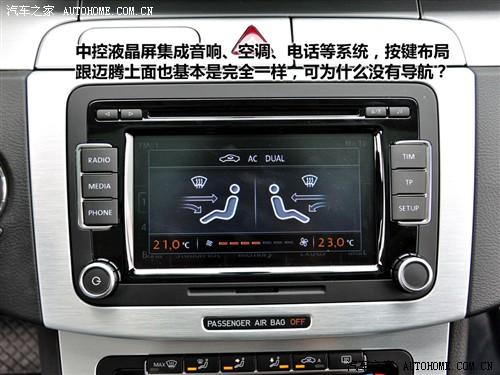 中控面板上有可以彈出的撥號(hào)鍵,右側(cè)則有一個(gè)儲(chǔ)物用的小抽屜,如果你見(jiàn)過(guò)進(jìn)口邁騰就會(huì)覺(jué)得這些都很眼熟。一個(gè)中央液晶屏基本囊括了整個(gè)音響、導(dǎo)航、電話和空調(diào)系統(tǒng)的功能,不過(guò)這款低配車型上沒(méi)有導(dǎo)航,按鍵布局跟國(guó)產(chǎn)邁騰一模一樣。
