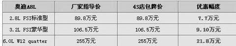 市場(chǎng)情況:起初高檔豪華車也是直接降價(jià),之后又出現(xiàn)送購(gòu)置稅的政策,甚至出現(xiàn)“買大車送小車”的舉動(dòng),讓人覺(jué)得豪華車市場(chǎng)利潤(rùn)之大。而奧迪A8L近日的讓利政策也是贈(zèng)送購(gòu)置稅。但目前現(xiàn)車數(shù)量并不多,車型有限。