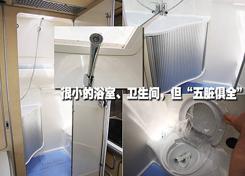 麻雀雖小但五臟俱全,房車雖然比不上房子但是勝似一個溫馨的家。在房車的后部,獨立設計的衛生間以及浴室真的是太周到了,這里的每一件衛具都是為了房車緊湊的空間而特殊設計的。